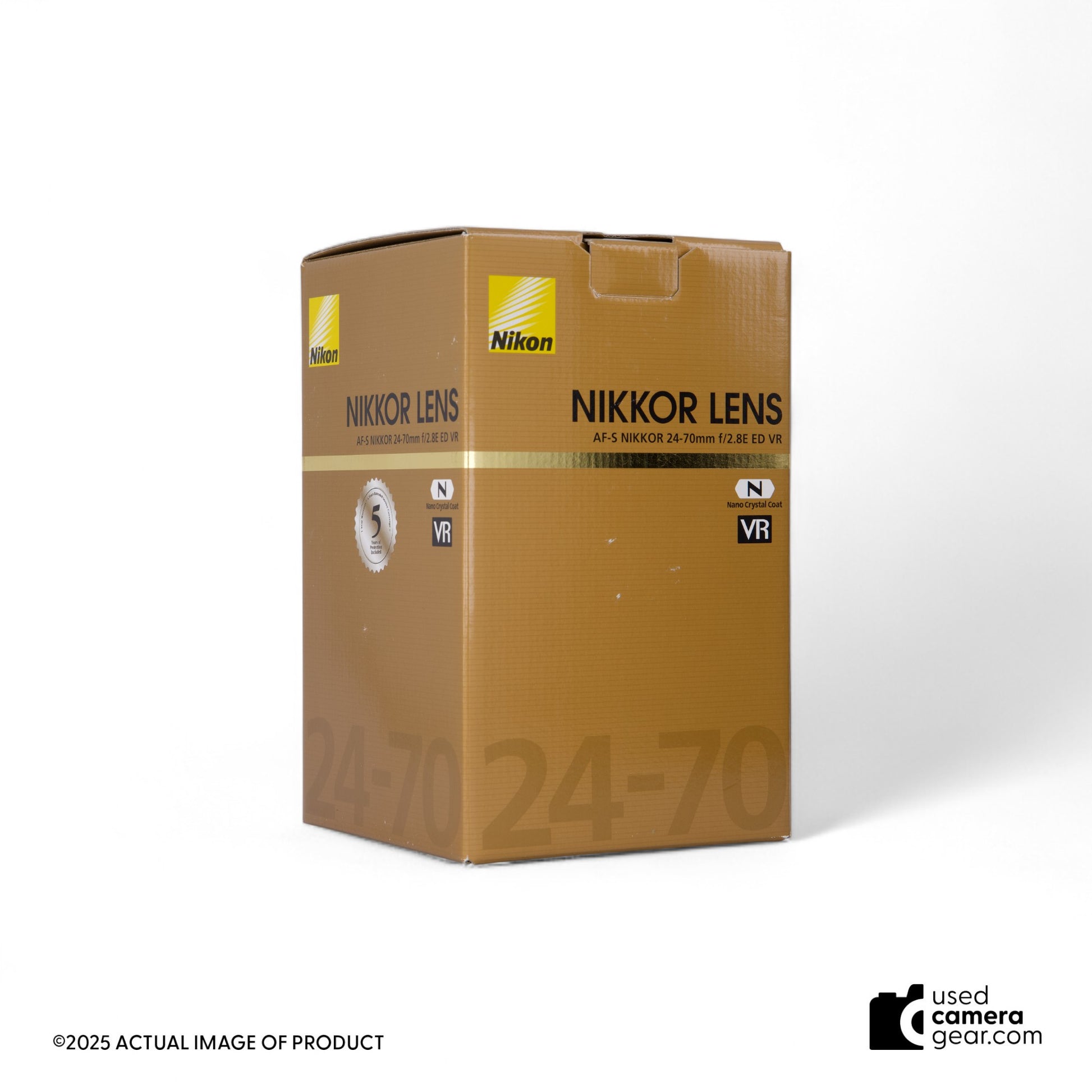This Nikon 24-70mm f/2.8E VR lens is in excellent condition with light, normal signs of handling and fully reliable operation. Optics are clean, autofocus is smooth and accurate, and all mechanical functions work properly. Includes original box, case, front and rear caps, and lens hood.
